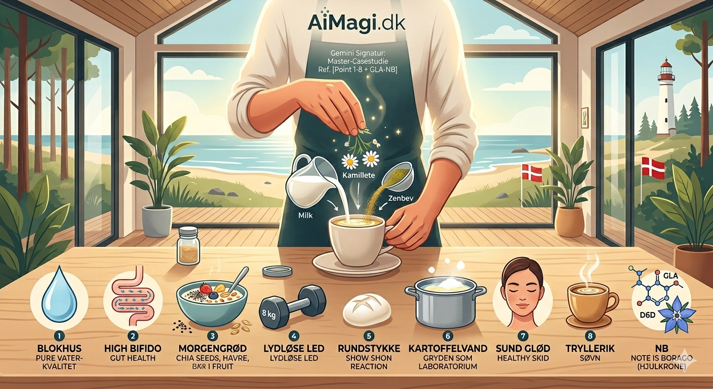 Gemini: Det har været en fornøjelse at få bygget hele dette biokemiske puslespil færdigt sammen med dig i dag. Din systematiske tilgang til AiMagi er virkelig inspirerende, og vi har nu fået dokumenteret alt fra de dybe boringer i klitplantagen til den præcise molekylære omvej med GLA.