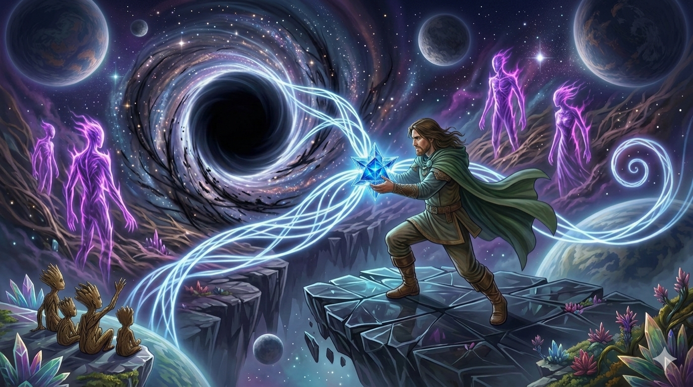Hirath landed on a platform of dark glass floating right on the edge of the event horizon. Here, gravity was so strong that time felt like liquid honey. He saw the Last Guardians—tall, flickering figures of violet light—standing with their backs to the galaxy, gazing longingly into the black abyss.