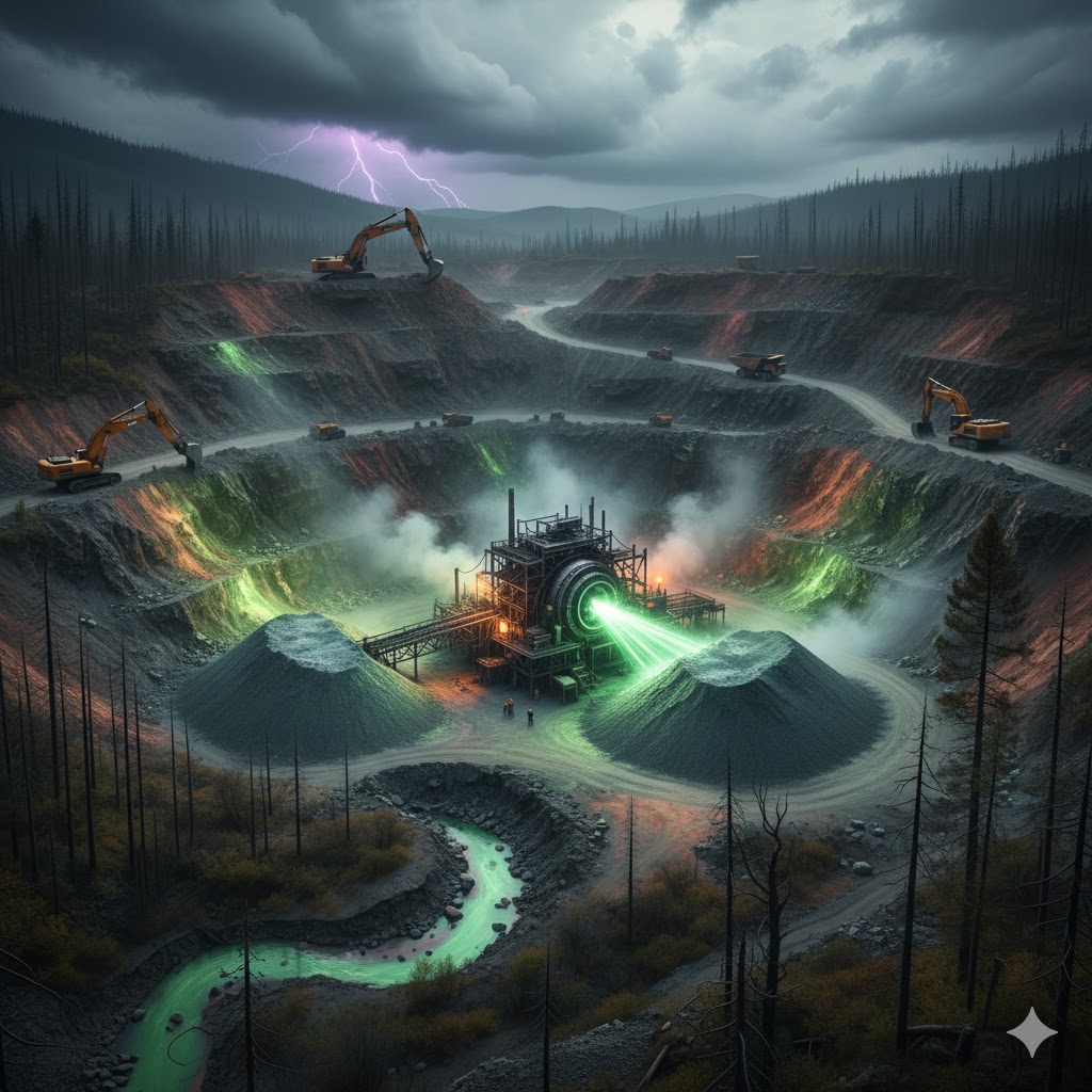 In-situ Leaching (ISL) / In-situ Recovery (ISR): The most widespread method today. A chemical solution (lixiviant) is pumped into the ground to dissolve the uranium directly within the rock, after which the liquid is pumped back to the surface.
